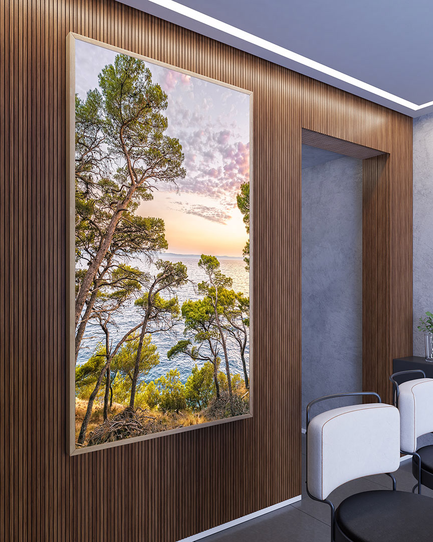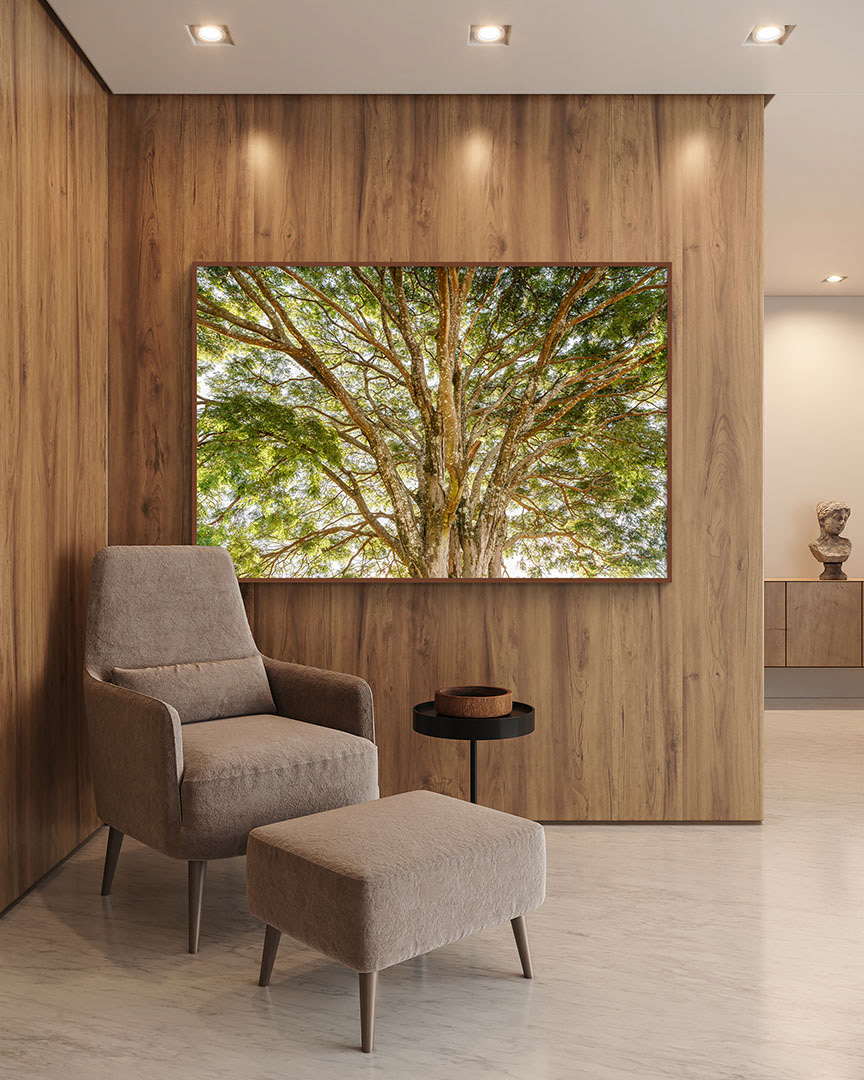 Nesta coleção, revelo a imponência e a serenidade das árvores com obras fotográficas que unem força e beleza atemporal para transformar ambientes em espaços de conexão, contemplação e sofisticação.